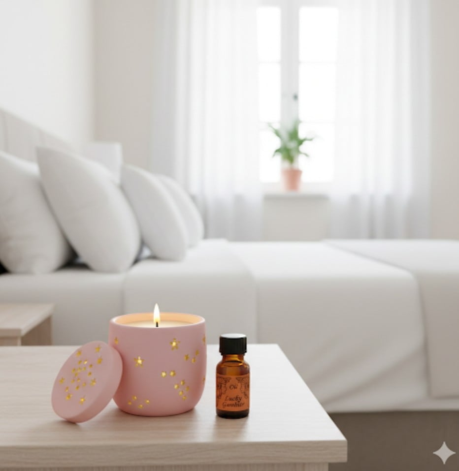 このキャンドルには願いを叶えるオイルが使用されておりあなた様に合わせたオイルの香りと焚き火の芯は暖かみのあるパチパチといった音が楽しめます。